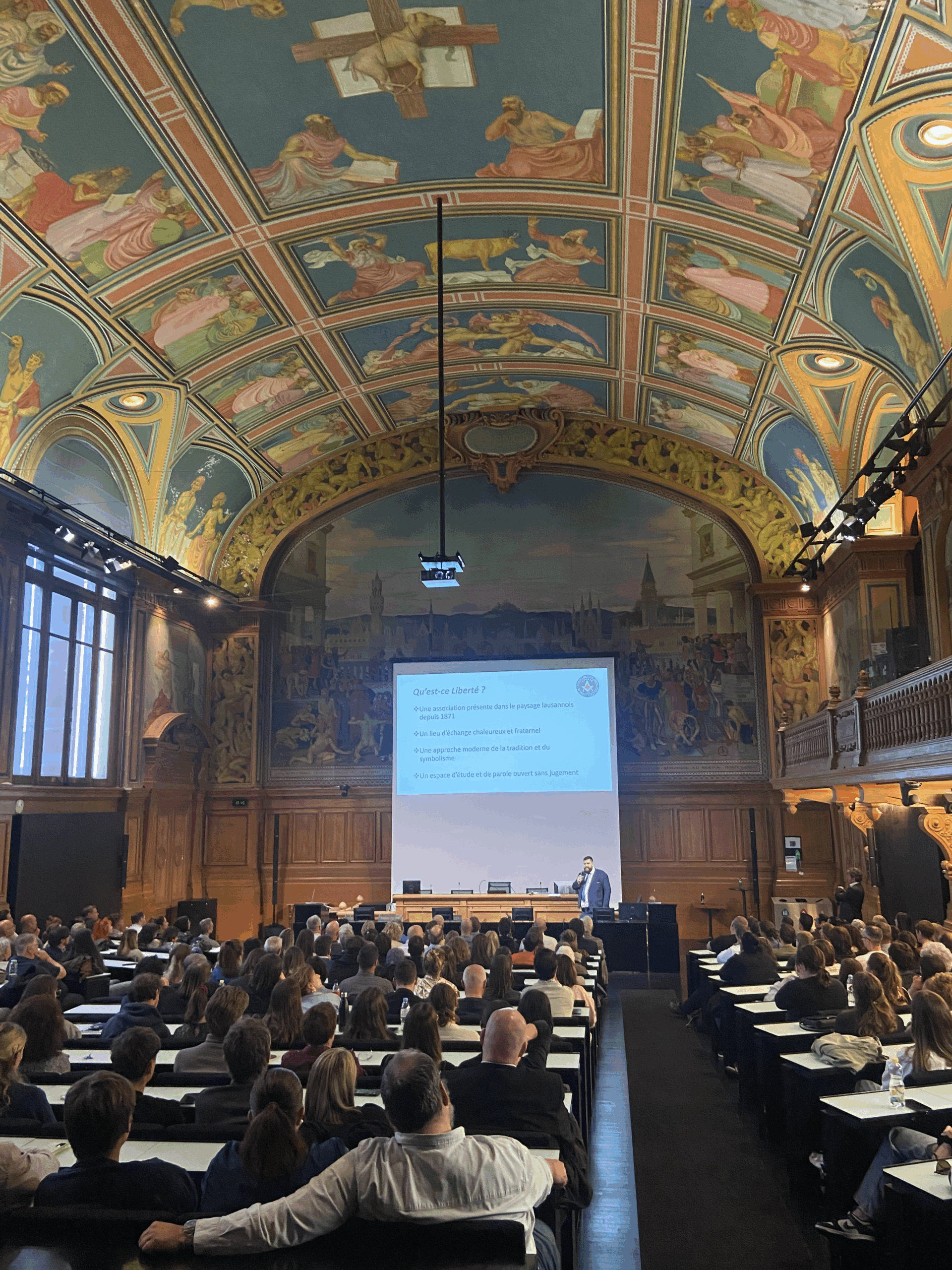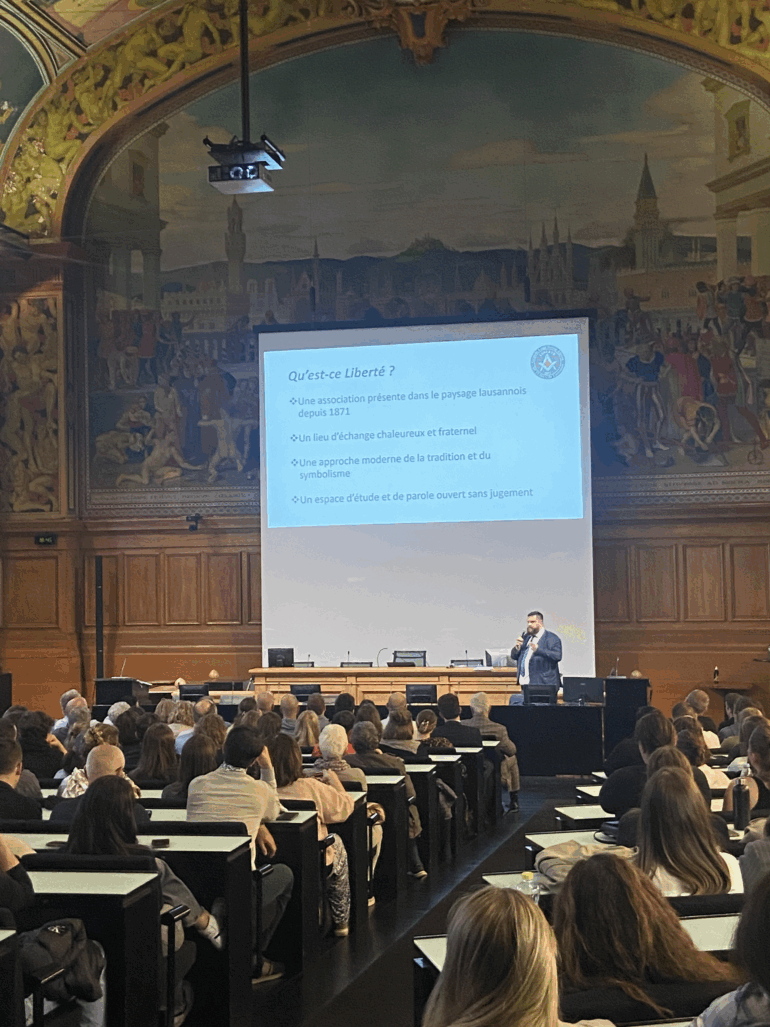Le lundi 12 mai 2025, nous avons eu le privilège d’accueillir plus de 270 personnes à la somptueuse salle de l’Aula du Palais de Rumine et Espace Arlaud pour une conférence blanche (ouverte au public), exceptionnelle il va s’en dire, organisée par notre Loge Liberté à l’Orient de Lausanne.
